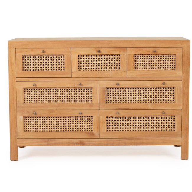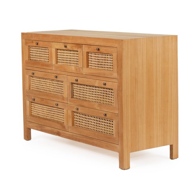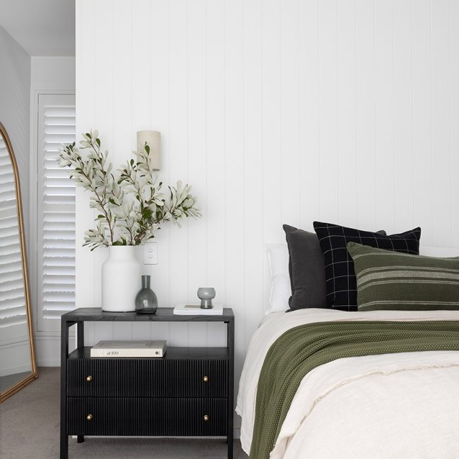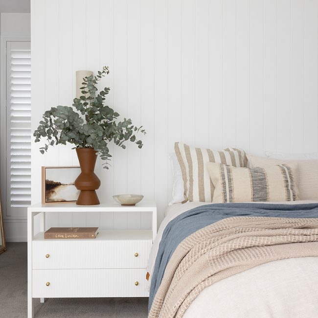 Our bedside tables balance surface, storage, and style. Timber and rattan options bring natural warmth; painted finishes add crisp definition. Pair as a symmetrical set beside your bed, coordinate handles with your dresser, and finish with sculptural lamps. Keep the palette cohesive and consider a round mirror above the dresser to reflect light.