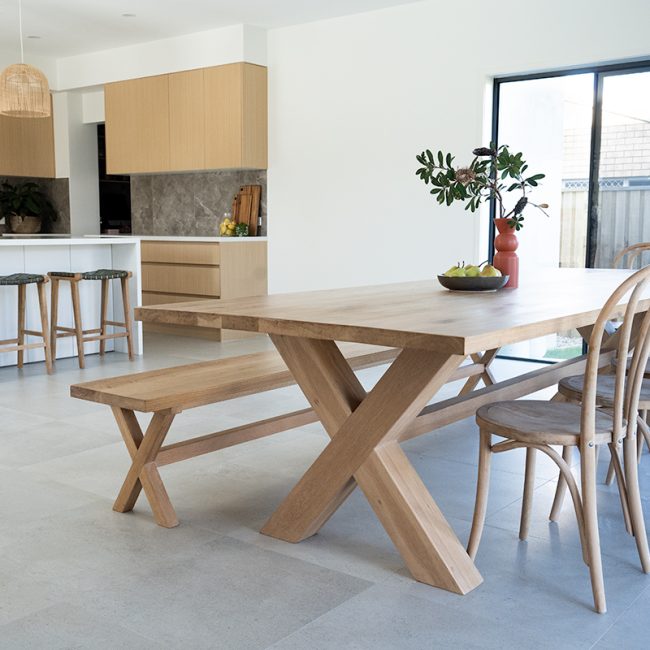 Create a relaxed, communal feel with bench seating. Benches slide neatly under dining tables to save space and invite flexible seating for family and guests. Mix with dining chairs along one side, or use a bench at the kitchen island for casual breakfasts. Natural timbers and sturdy joinery ensure longevity, while upholstered tops add comfort for long lunches.