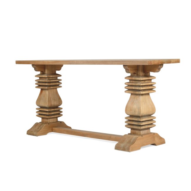 Our Newport Pedestal Tables are handcrafted of solid White Cedar wood. With the round Newport pedestal table range we aspire to showcase our expert craftsmanship and quality, culminating in a perfectly balanced pedestal table design. A central pedestal leg, meticulously carved and strengthened with solid dowels support a generous solid White Cedar wood table top finished in a lightly brushed weathered oak stain.