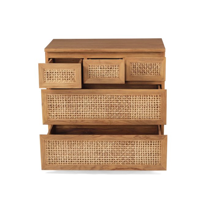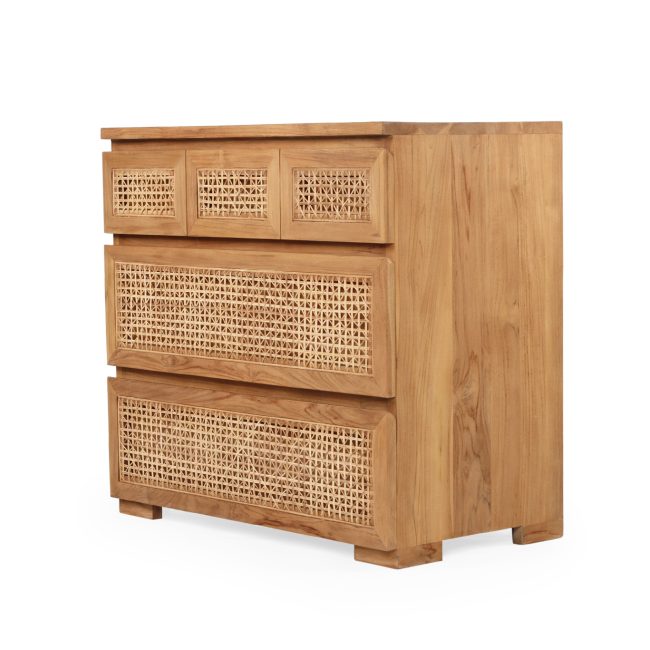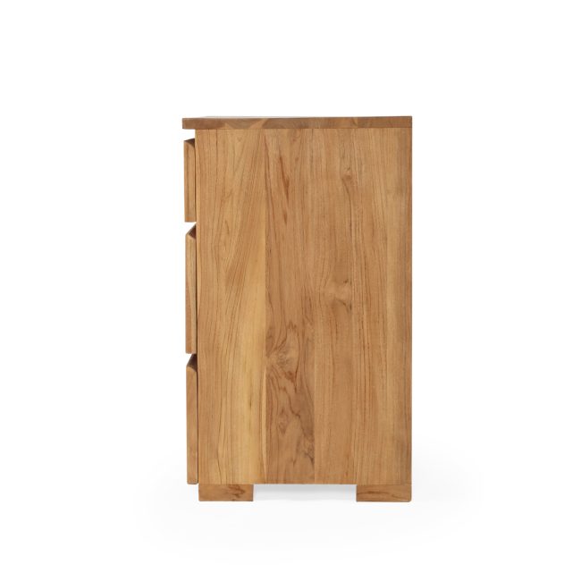 Made from high grade sustainable teak, the Fernando Chest Of Drawers is presented with a fine sanded finish and will complete any bedroom. The Fernando Chest Of Drawers is solid and unique in its structure and design.