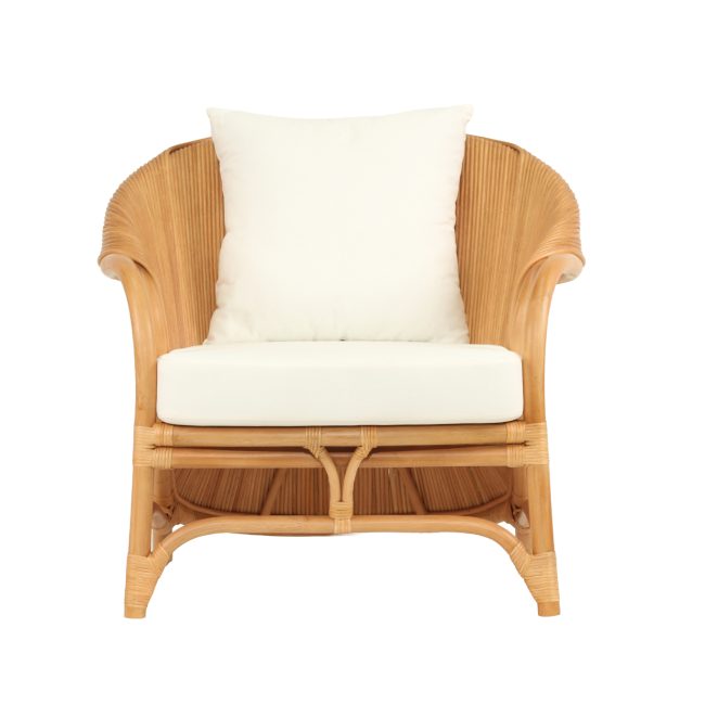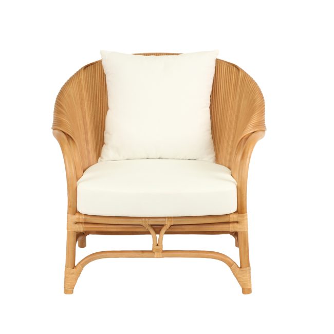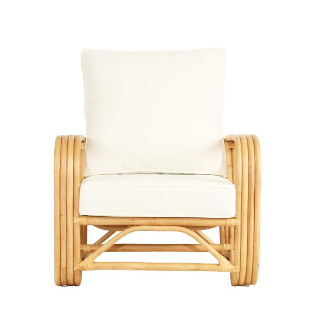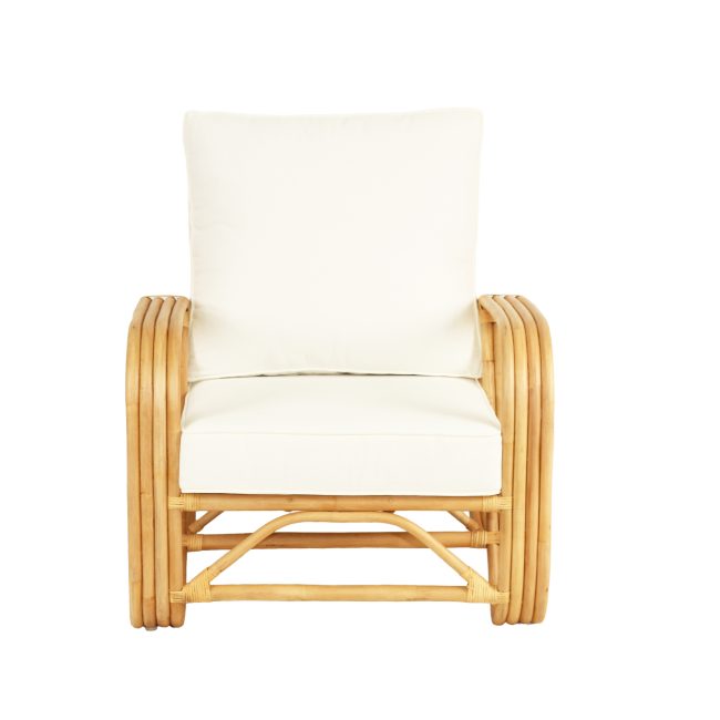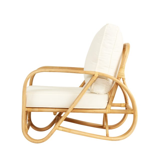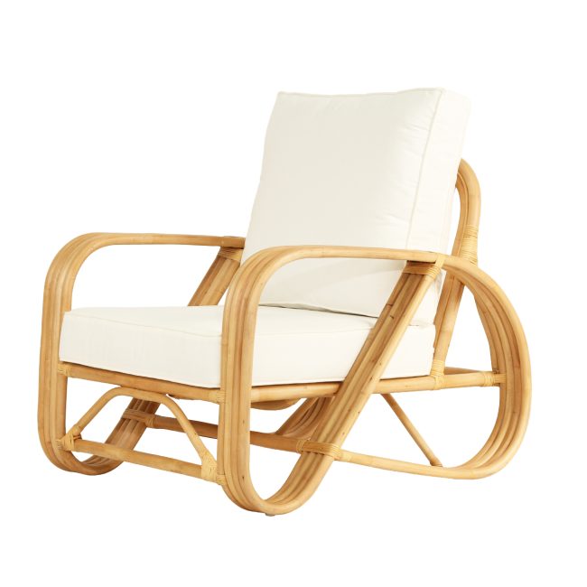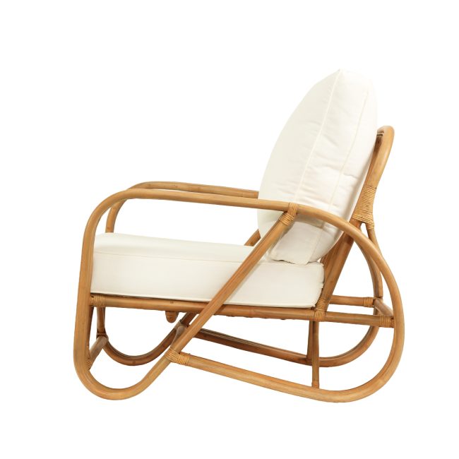 Pretzel Armchair – Natural Frame – White Cushions