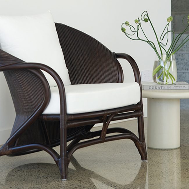 Pretzel Armchair – Brown Frame – White Cushions