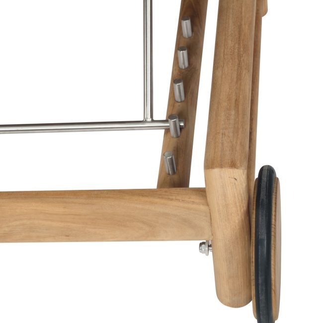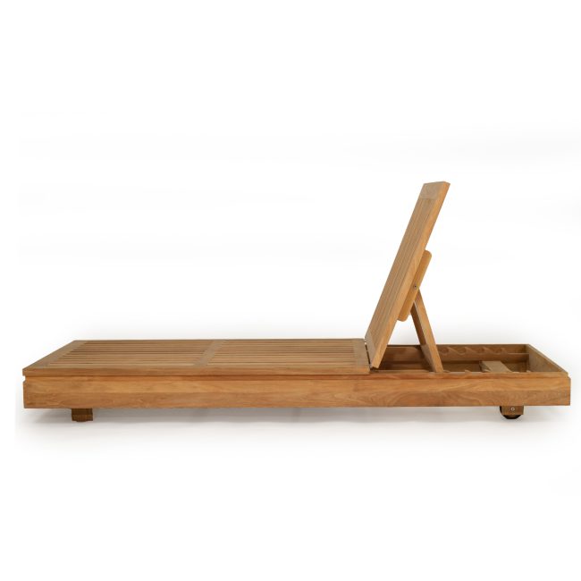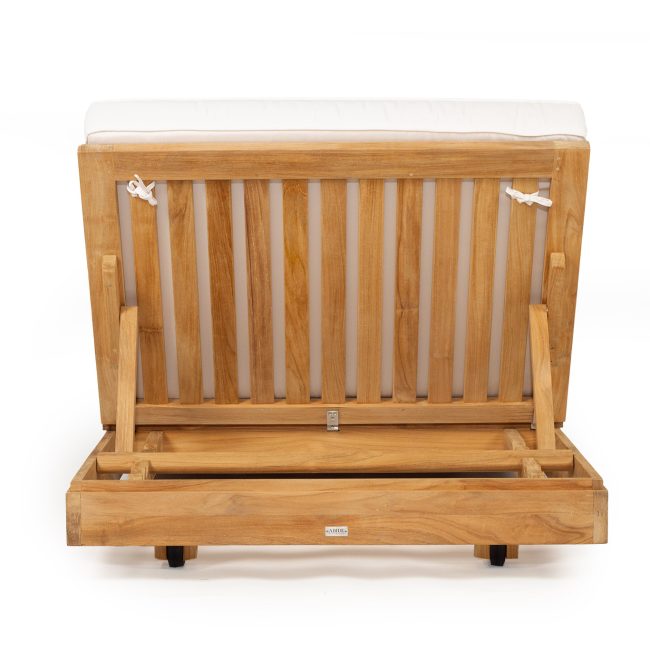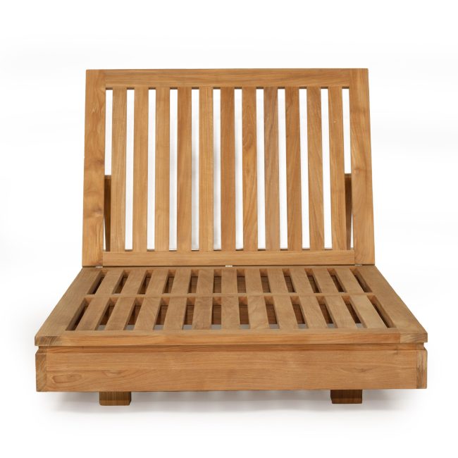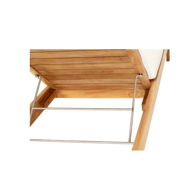 The easy adjust mechanism allows a recline at many different angles and arm rests with Teak accents provide the capability for ultimate relaxation.