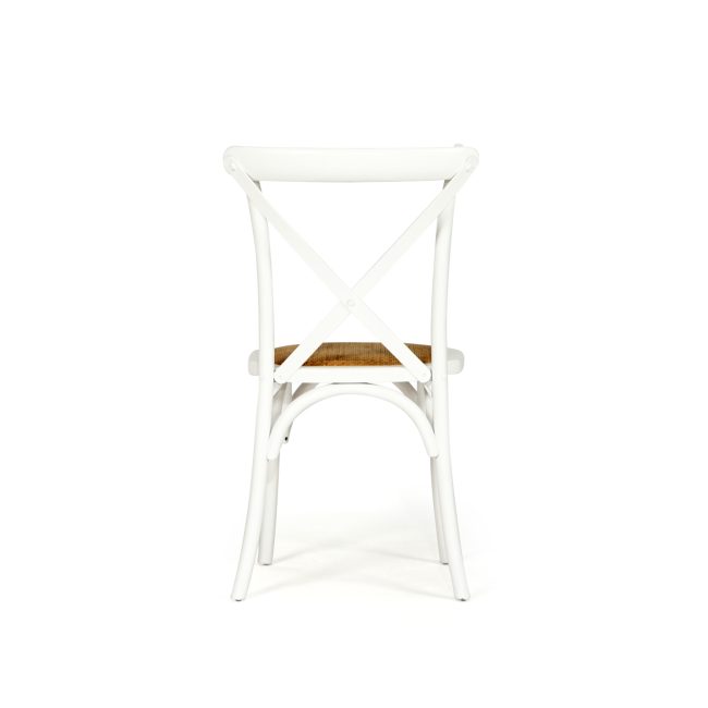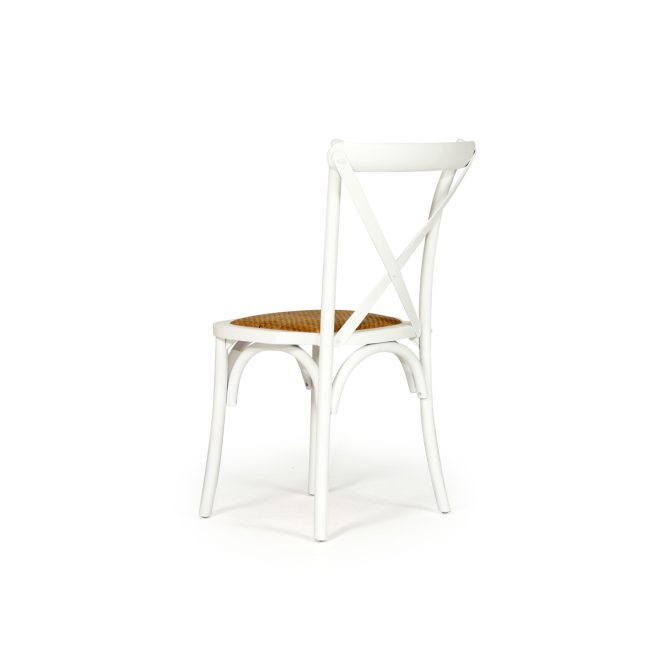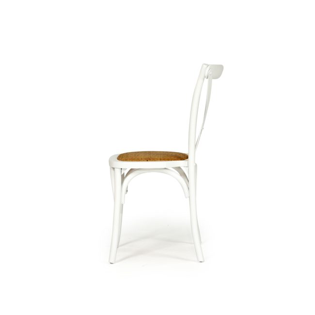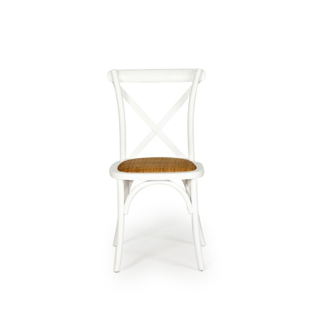 This quintessential French cafe style chair combines the classic villa style “cross back” design with a sturdy timber construction and padded rattan seat. These chairs are a timeless design, yet are frequently used as transitional pieces to suit French Provincial, Parisian Chic, and Coastal style table settings and decor.