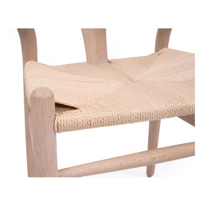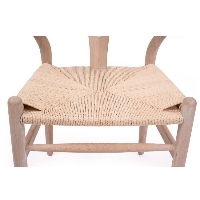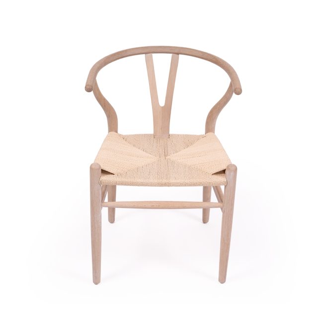 The Wishbone designer chair is a replica of the original Hans J Wegner CH24 Wishbone chair designed in 1950. The iconic design was inspired by portraits of Danish merchants sitting in Chinese Ming Dynasty chairs. It combines top rails and arms into a single piece with a characteristic Y-shaped back which provides comfortable support while giving stability to the steam-bent top. A natural paper cord base provides additional comfort and style whilst the tapered legs are an additional asset of the chair.