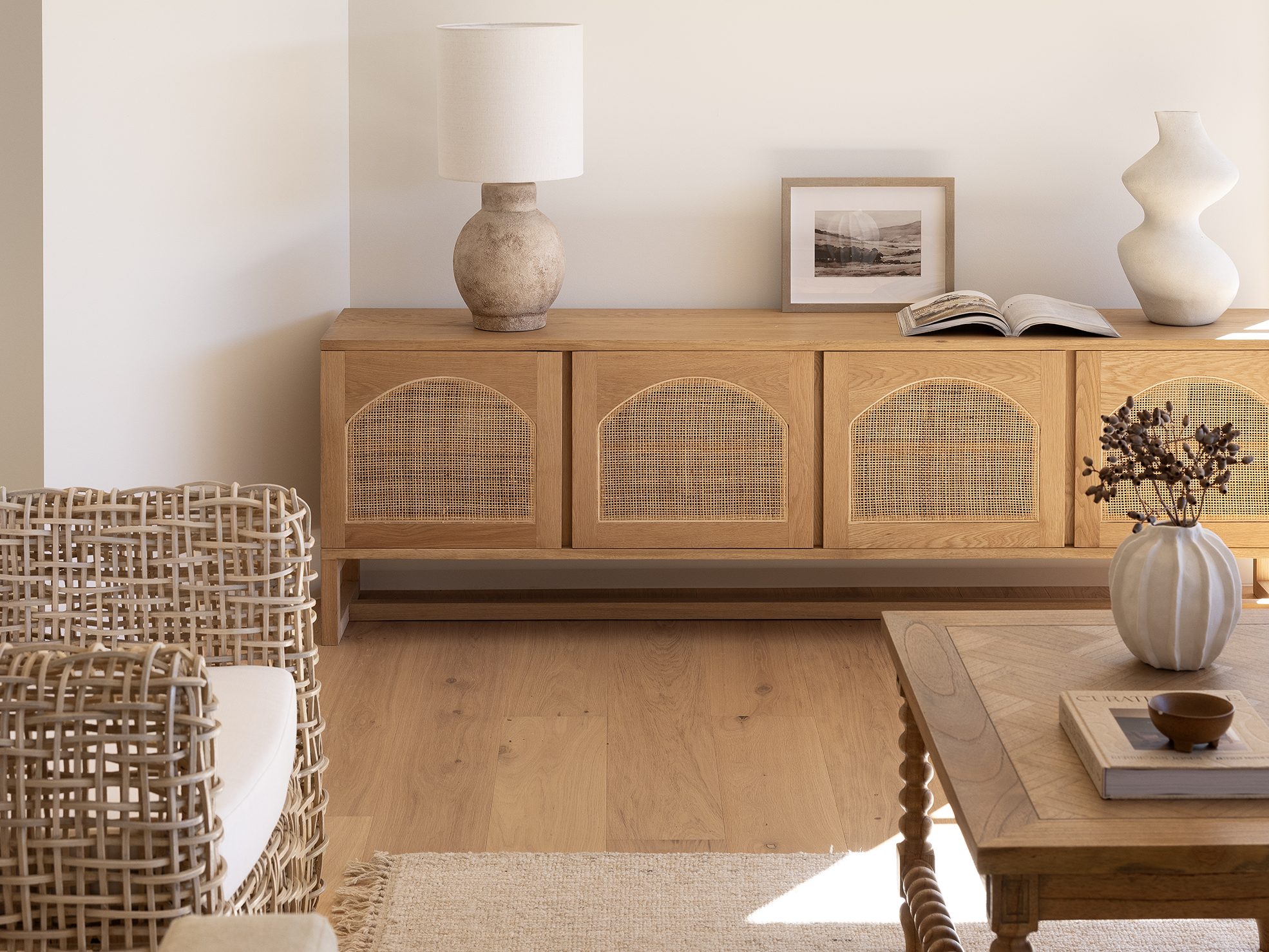 A calm summer interior is one that feels uncluttered and considered. Functional storage pieces should feel intentional, not purely practical.